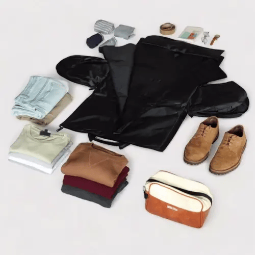 Un borsone porta abiti che mantiene il tuo completo, camicie (o abito) senza pieghe, unito a un pratico vano per le tue scarpe, vestiti piegati e accessori.
